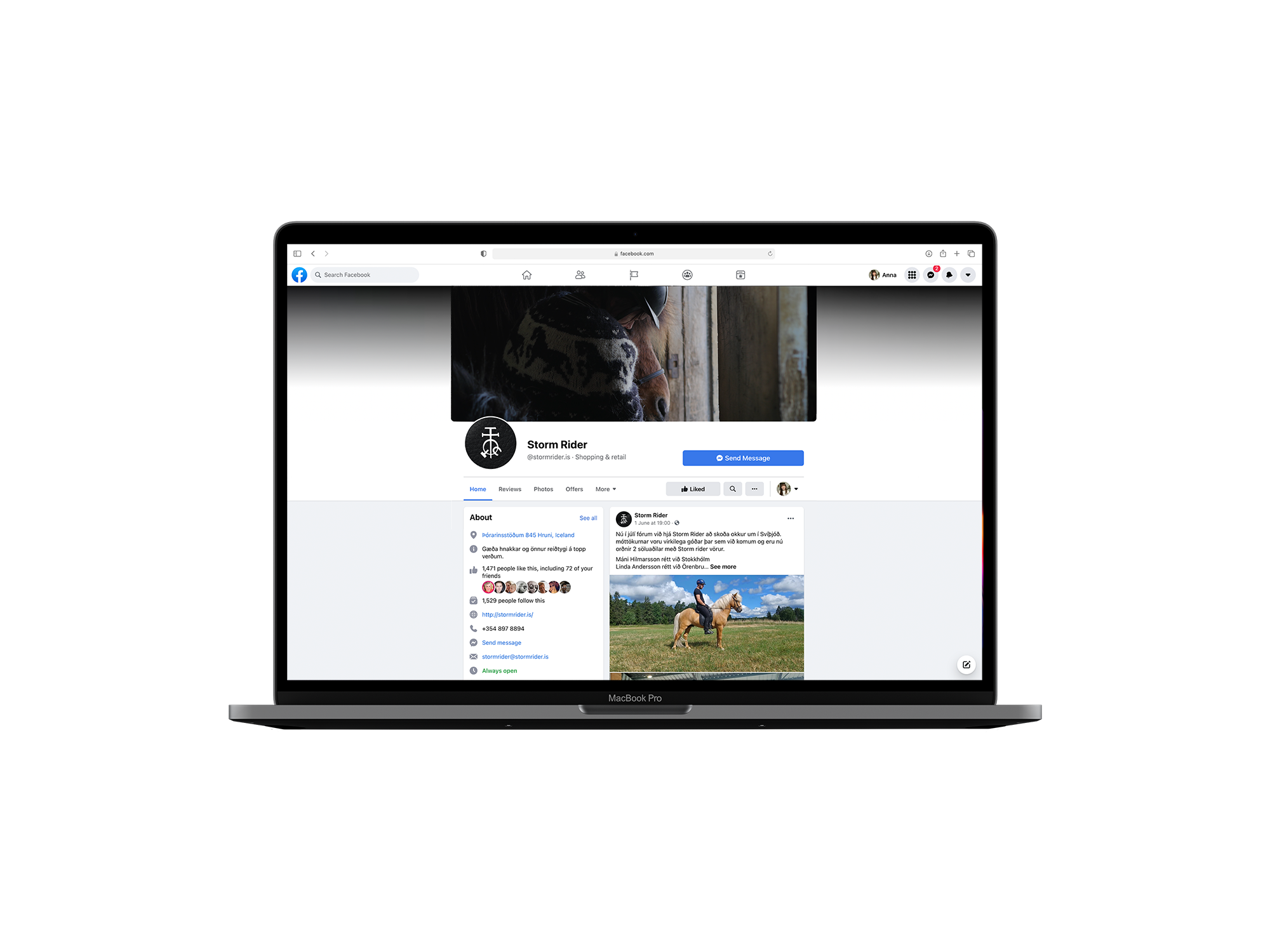 Storm Rider is a small equestrian equipment start-up company in Iceland. They sell their products through their “not so active” Facebook page, but they have managed to sell a lot of products simply through word of mouth. I have worked with them, helping them form their brand, and get ready to launch a website and get their company to the next level.